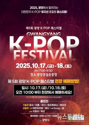이현주 광양시 관광과장은 “기존의 탄탄한 최정상급 라인업에 신예 아티스트가 합류하면서 라인업이 더욱 풍성해졌다”며 “강렬한 퍼포먼스와 비주얼, 독창적인 음악 스타일로 특별한 감동을 선사할 제5회 광양 K-POP 페스티벌에 많은 관심과 성원을 바란다”고 말했다.
