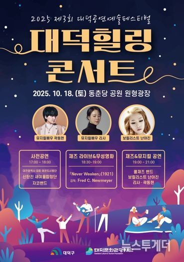 뉴스투게더 김인숙 기자 | 대덕문화관광재단은 오는 18일 동춘당 원형광장에서 ‘2025 대덕힐링콘서트’를 개최한다고 밝혔다.