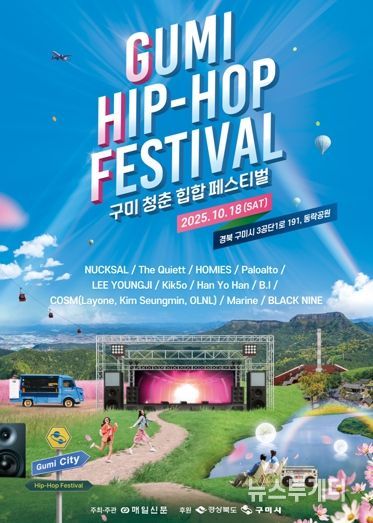 뉴스투게더 김인숙 기자 | 구미시는 오는 10월 18일 동락공원에서 청춘들의 열정과 힙합 음악이 어우러지는 '2025 구미청춘힙합페스티벌'을 개최한다. 이번 공연은 오후 3시 30분부터 밤 10시까지 진행되며, 전석 무료(스탠딩존)로 선착순 입장할 수 있다.