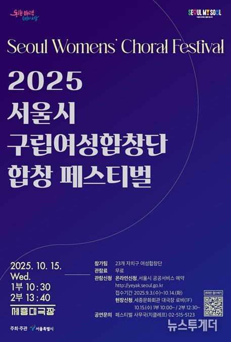 뉴스투게더 김인숙 기자 | 서울시는 깊어가는 가을을 맞아 오는 10월 15일 오전 10시 30분부터 세종문화회관 대극장에서 '2025 서울시 구립여성합창단 합창 페스티벌'을 개최한다. 이번 페스티벌에는 서울시 23개 자치구 여성합창단 700여 명이 무대에 올라, 아름다운 화음으로 시민들에게 잊지 못할 감동과 따뜻한 추억을 선사할 예정이다.