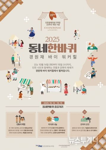 뉴스투게더 김인숙 기자 | 인천경제자유구역청은 오는 14일과 15일 이틀간 경원재 한옥호텔에서 제2회 경원재 시민페스티벌 ‘2025 동네한바퀴 경원재바이워커힐’을 개최한다고 밝혔다.