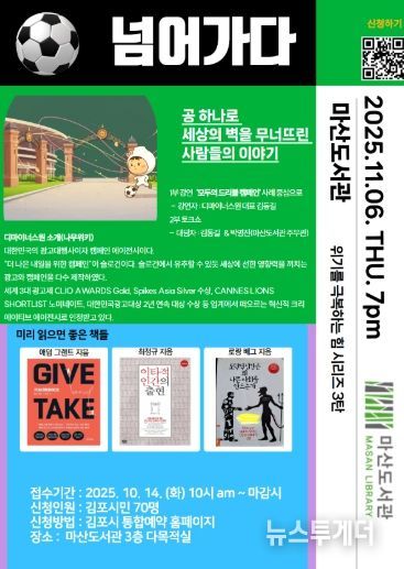 뉴스투게더 김인숙 기자 | 마산도서관은 오는 11월 6일 19시, 본관 3층 다목적실에서 ‘공 하나로 세상의 벽을 무너뜨린 사람들의 이야기’ 프로그램을 운영한다고 밝혔다.