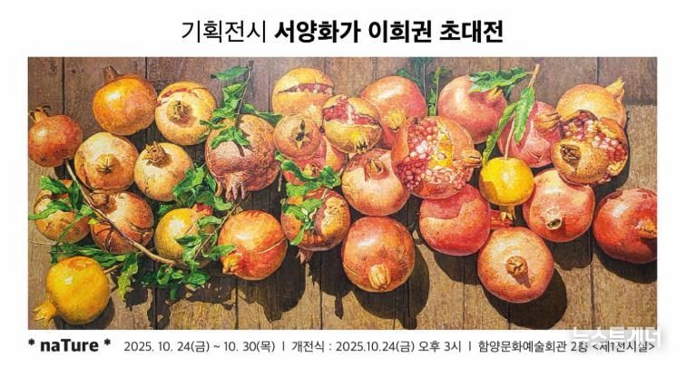 뉴스투게더 김인숙 기자 | 함양군은 오는 10월 24일부터 30일까지 함양문화예술회관 제1전시실에서 2025년 기획 전시로 서양화가 이희권 작가를 초대해 ‘naTure(네이처)’를 개최한다.