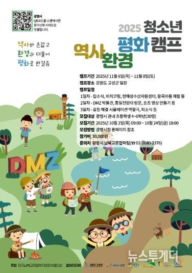 이번 캠프는 오는 11월 6일부터 8일까지 2박 3일 강원도 고성군 일원에서 진행하며, 청소년들이 분단의 현장을 직접 보고 느끼며 평화의 의미를 배우는 현장 중심 체험형 프로그램으로 운영한다.