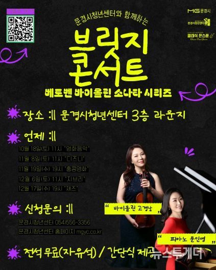 뉴스투게더 김인숙 기자 | 문경시청년센터는 오는 10월부터 12월까지 문경시청년센터 3층 라운지에서 클래식을 주제로 한‘브릿지 콘서트’를 연다.