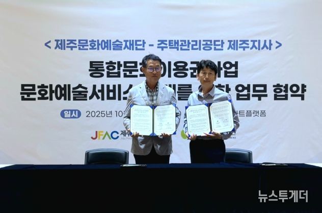 뉴스투게더 김인숙 기자 | 제주문화예술재단과 주택관리공단 제주지사는 지난 13일 통합문화이용권 사업(문화누리카드)과 연계한 문화예술 서비스 확대를 위해 업무협약을 체결했다.