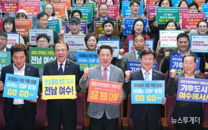 뉴스투게더 김인숙 기자 | 전라남도는 14일 여수 진남문예회관에서 ‘2026년 유엔기후변화협약 기후주간’ 국내 개최지 공모에 여수가 선정된 것을 축하하고, 행사 성공개최를 다짐하는 기념행사를 열었다.