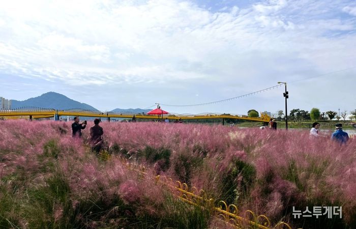 뉴스투게더 김인숙 기자 | 장성군 황룡강 가을꽃축제 이튿날인 19일, 강변 곳곳마다 활짝 핀 가을꽃들이 방문객을 반기고 있다. 특히 용작교, 황룡정원 방면 백일홍과 연꽃정원 코스모스, 문화대교 인근 핑크뮬리가 아름답다.