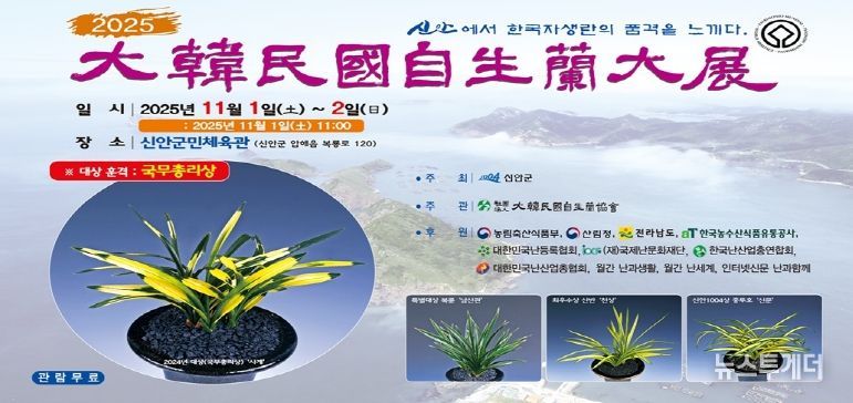 뉴스투게더 김인숙 기자 | 2025 대한민국자생란대전이 오는 11월 1일부터 2일까지 압해도 신안군민체육관에서 개최된다. 이번 대전은 전국에서 출품된 약 2,000여 점의 자생란 작품을 선보이며, 멸종위기종을 포함한 희귀 자생란의 보존과 난문화 대중화, 산업화 기반 조성을 목표로 한다.