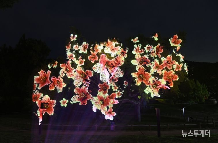 영상은 440년의 세월을 품은 은행나무에 투사되며, 나무의 생장 과정을 유교의 ‘깨달음’과 ‘결실’ 가치에 빗대어 표현한 미디어아트 작품이다. 고즈넉한 서원 풍경 속 은행나무가 거대한 화면으로 변해, 빛과 영상이 어우러지며 가을밤 도동서원의 색다른 매력을 보여준다.