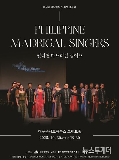 오는 10월 30일 오후 7시 30분, 대구콘서트하우스 그랜드홀에서는 세계 최정상의 아카펠라 합창단 ‘필리핀 마드리갈 싱어즈(Philippine Madrigal Singers)’가 천상의 목소리로 대구를 물들인다. 이번 공연은 대구콘서트하우스가 기획한 합창공연으로 아시아 각국을 순회하는 필리핀 마드리갈 싱어즈의 글로벌 투어 중 가장 주목받는 일정으로 꼽히고 있다.