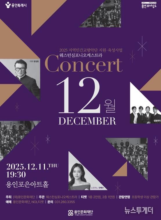 뉴스투게더 김인숙 기자 | 용인문화재단은 오는 12월 11일 오후 7시 30분, 용인포은아트홀에서 웨스턴심포니오케스트라 '콘서트 ‘12월’' 공연을 개최한다.