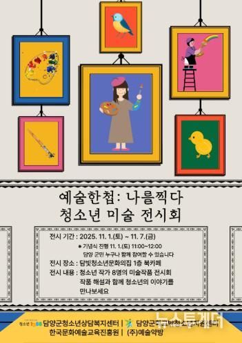 뉴스투게더 김인숙 기자 | 담양군청소년상담복지센터는 11월 1일부터 7일까지 담빛청소년문화의집 1층 로비에서 청소년 미술작품 전시회 ‘예술한첩: 나를 찍다’를 연다.