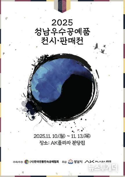 뉴스투게더 김인숙 기자 | 성남시는 오는 11월 10일부터 13일까지 4일간 AK플라자 분당점 1층 광장에서 ‘2025년 성남시 우수공예품 전시판매전’을 개최한다.