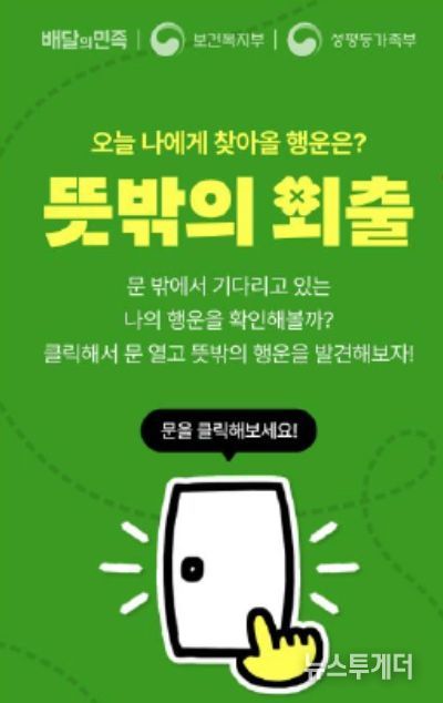 뉴스투게더 김인숙 기자 | 보건복지부는 배달의 민족과 함께 11월 6일부터 고립은둔 이슈를 알리고 고립은둔청년을 발굴·지원하는 캠페인을 진행한다고 밝혔다.