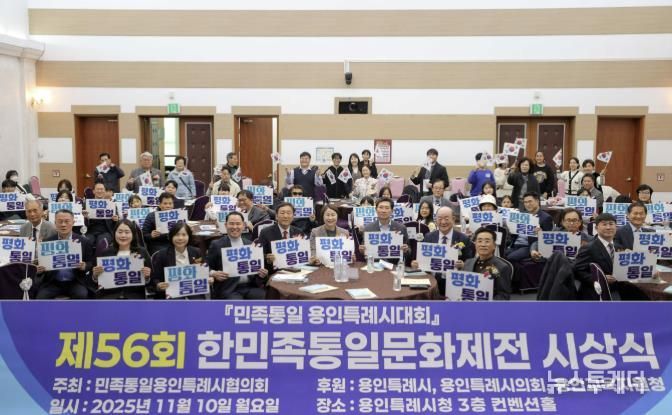 뉴스투게더 김인숙 기자 | 용인특례시는 10일 시청 컨벤션홀에서 민족통일 용인특례시협의회 주관으로 ‘민족통일 용인특례시대회와 제56회 한민족통일문화제전 시상식’이 열렸다고 밝혔다.