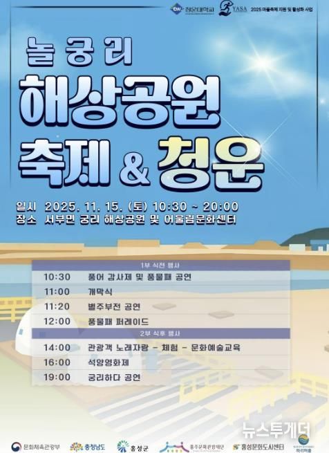 뉴스투게더 김인숙 기자 | 홍성군은 15일 ‘놀궁리 해상공원 축제&청운’을 개최한다.