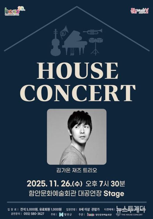 뉴스투게더 김인숙 기자 | 함안군은 오는 11월 26일 오후 7시 30분, 대표 기획 시리즈 ‘하우스콘서트’를 11월 ‘문화가 있는 날’ 프로그램으로 마련해 재즈 피아니스트 김가온을 초청한다고 밝혔다.