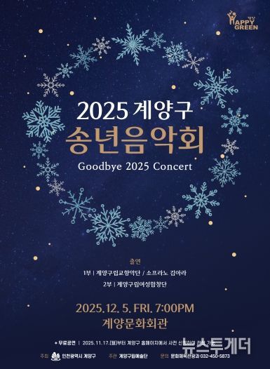 이번 음악회는 단순한 공연을 넘어, 한 해를 함께 보낸 주민들이 서로를 응원하고 마음을 나누는 소중한 자리로 마련됐다. 겨울밤을 은은하게 밝혀줄 아름다운 멜로디와 따뜻한 위로가 함께하는 시간으로, 계양 주민이라면 놓치기 아까운 특별한 연말 선물이 될 것이다.