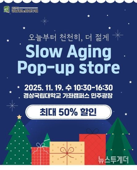 뉴스투게더 김인숙 기자 | 경상남도는 재단법인 경남항노화연구원(원장 한기민)이 19일 경상국립대학교 가좌캠퍼스에서‘ 슬로우에이징 팝업스토어’를 개최한다고 밝혔다.