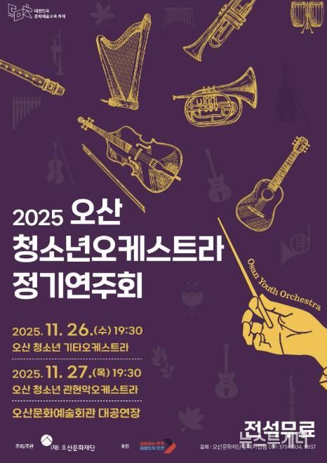 뉴스투게더 김인숙 기자 | 오산문화재단이 주최하고 오산시가 후원하는 ‘2025 오산 청소년 오케스트라 정기연주회’가 오는 11월 26일부터 27일까지 오산문화예술회관 대공연장에서 이틀간 개최된다. 공연은 전석 무료로 시민 누구나 관람할 수 있다.