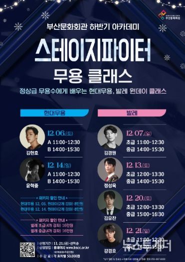 뉴스투게더 김인숙 기자 | (재)부산문화회관은 최근 다양한 문화 콘텐츠와 공연 활동을 통해 시민들의 무용에 대한 관심과 학습 수요가 꾸준히 증가하고 있는 흐름에 발맞춰, 오는 12월 무용 원데이 클래스 강좌를 마련한다.