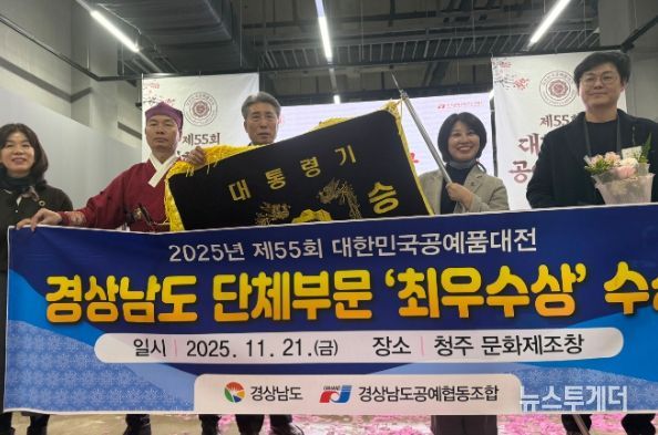 뉴스투게더 김인숙 기자 | 경상남도는 21일 청주시 문화제조창에서 열린 ‘제55회 대한민국 공예품대전 시상식’에서 3년 연속 단체 최우수상(국가유산청장상)을 수상하고 대통령기를 수여받았다고 밝혔다.