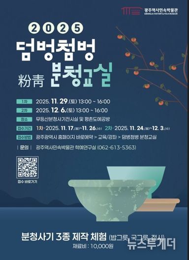 뉴스투게더 김인숙 기자 | 광주광역시 역사민속박물관은 ‘2025 덤벙첨벙 분청교실’을 11월29일과 12월6일 두 차례 운영한다.
