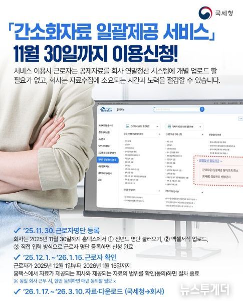 뉴스투게더 장은미 기자 | 「간소화자료 일괄제공 서비스」 11월 30일까지 이용신청!