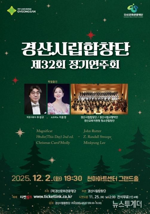 뉴스투게더 김인숙 기자 | 경산시립합창단이 오는 12월 2일 오후 7시 30분 영남대학교 천마아트센터 그랜드홀에서 2025년 마지막 정기연주회를 개최한다.
