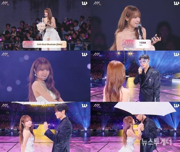 뉴스투게더 윤종우 기자 | 가수 최예나(YENA)가 'AAA' 베스트 뮤지션 상을 수상, 추영우와 설렘 퍼포먼스로 존재감을 드러냈다.