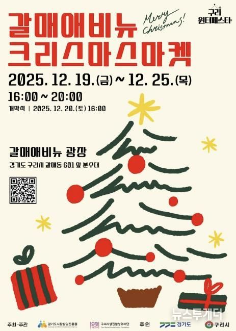 뉴스투게더 김인숙 기자 | 구리시상권활성화재단은 오는 12월 19일부터 25일까지 갈매 애비뉴 광장에서 ‘2025 구리윈터페스타–갈매애비뉴 크리스마스 마켓’을 개최한다고 밝혔다.