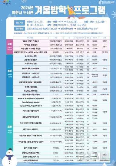 뉴스투게더 김인숙 기자 | 이천시는 2026년 1월부터 2월까지 겨울방학 기간에 어린이를 대상으로 한 다양한 독서문화 프로그램을 운영한다고 밝혔다.