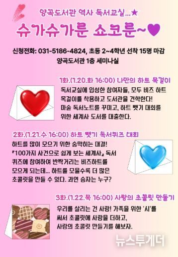뉴스투게더 김인숙 기자 | 김포시는 2026년 1월 20일 오후 4시부터 6시까지 1층 세미나실에서 초등학교 2~4학년을 대상으로 한 역사 독서교실 '슈가슈가룬 쇼코룬'을 운영한다.