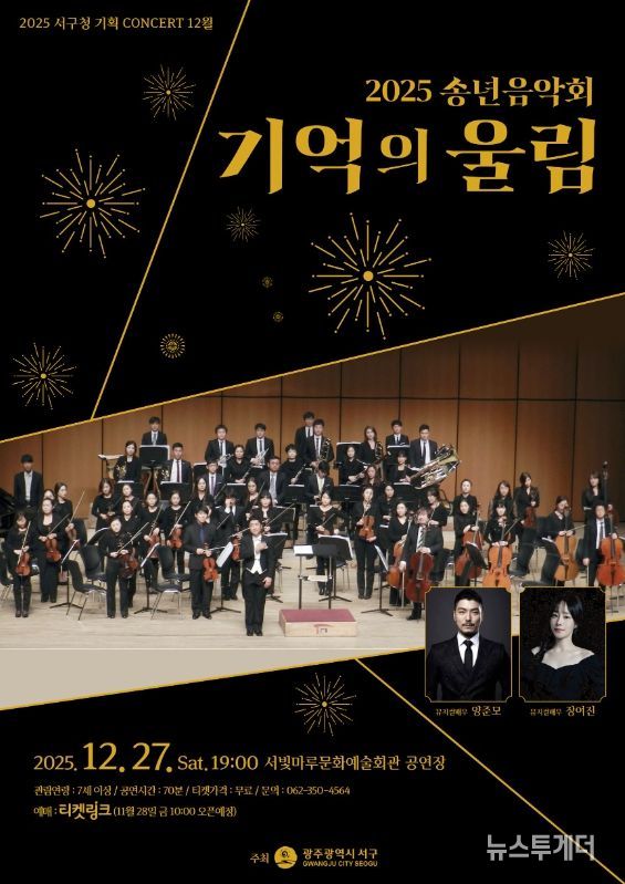뉴스투게더 김인숙 기자 | 광주광역시 서구는 2025년 한 해를 마무리하며 오는 27일 오후7시 서빛마루문화예술회관에서 송년음악회 ‘기억의 울림’을 개최한다.