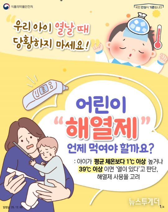 뉴스투게더 김인숙 기자 | 식품의약품안전처 소속 식품의약품안전평가원(원장 강석연)은 겨울철에는 고열이 동반된 감기 및 독감 환자의 해열제 사용이 늘어남에 따라, 소아 해열제의 올바른 사용방법을 안내한다고 밝혔다.