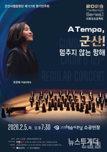뉴스투게더 김인숙 기자 | 군산시립합창단이 제121회 정기연주회 〈2026 The Barton Series Ⅰ 지휘자 프로젝트〉 A Tempo, 군산! '멈추지 않는 항해'를 오는 2월 5일 저녁 7시 30분, 군산예술의전당 소공연장에서 개최한다.