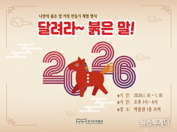 뉴스투게더 김인숙 기자 | 경기문화재단 경기도박물관(관장직무대행 박본수)은 병오년 새해를 맞아 관람객을 위한 체험형 교육행사 〈달려라~ 붉은 말!〉을 1월 16일부터 18일까지 3일간 박물관 로비에서 운영한다.