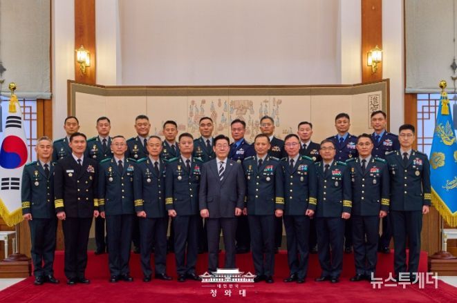 뉴스투게더 김태훈 기자 | 이재명 대통령은 오늘 오후 중장 진급 및 보직 신고, 그리고 수치 수여식을 개최했다.