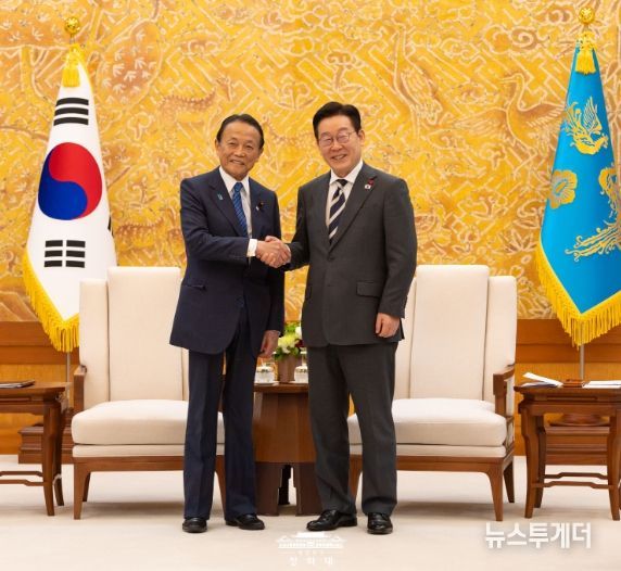 뉴스투게더 김태훈 기자 | 이재명 대통령은 16일 16시부터 약 30분간 '서울-도쿄 포럼' 참석차 방한한 아소 다로(麻生 太郎) 전 일본 총리를 접견하고, 이번 주 진행된 나라(奈良) 방문(1.13.-14.)과 한일 정상회담 결과 등에 대해 이야기를 나누었다.