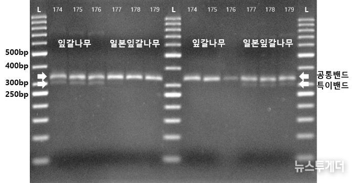 이에 국립산림과학원 연구진은 목재의 DNA 추출 효율을 극대화하는 조건을 확립하고, 엽록체와 미토콘드리아 정보를 동시에 활용하는 정밀 분석 기술을 개발했다. 특히 형태가 유사해 육안 구별이 사실상 불가능한 ‘잎갈나무’와 ‘일본잎갈나무’를 유전적으로 정확히 판별할 수 있는 길을 열었다.