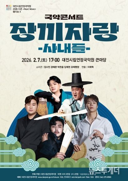 뉴스투게더 김인숙 기자 | 대전시립연정국악원(원장 오병준)은 병오년(丙午年) 붉은 말의 해를 말의 뜨거운 역동성을 닮은 남성 소리꾼들이 함께하는 2026 시즌 오프닝 국악콘서트〈장끼자랑 – 사내들〉을 오는 2월 6일 오후 5시, 국악원 큰마당에서 개최한다.