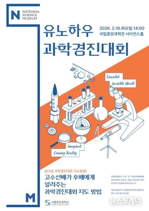 뉴스투게더 김인숙 기자 | 미래의 꿈을 만드는 과학 기술 문화 이음터(플랫폼) 과학기술정보통신부 국립중앙과학관은 2026년 전국 과학경진대회의 본격적인 시작에 앞서 전국 누구나 대회에 쉽게 참가할 수 있도록, 2월 10일에 국립중앙과학관 사이언스 홀에서'2026년 전국 과학경진대회 설명회'를 개최한다.