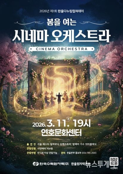 뉴스투게더 김인숙 기자 | 한국수력원자력(주) 한울원자력본부는 3월 11일 19시 울진군 연호문화센터에서 제1회 한울다누림컬쳐데이 '봄을 여는 시네마 오케스트라'를 개최한다.
