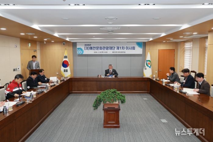 뉴스투게더 김인숙 기자 | 예천문화관광재단(이사장 김학동)은 26일 오후 2시 군청 중회의실에서 2026년도 제1차 이사회를 개최하고 2025회계연도 법인회계 결산, 제규정 개정, 2026년도 제1회 추가경정예산 등 총 3건의 안건을 심의·의결했다.