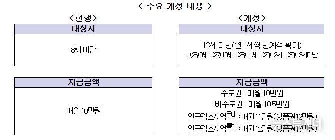 1. 아동수당 지급 대상 확대