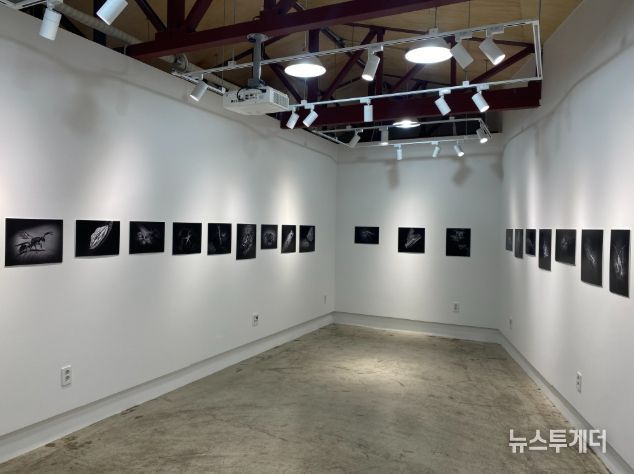 진솔한 작가는 곤충의 질감과 형태에 집중 할 수 있도록 색을 과감히 배제한 흑백 사진 형식으로 작품을 제작했다.