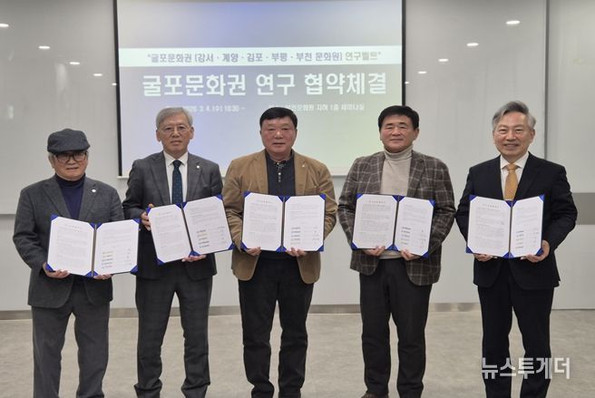 뉴스투게더 김인숙 기자 | 부천문화원과 강서문화원, 계양문화원, 김포문화원, 부평문화원은 3월 4일 부천문화원에서 ‘굴포문화권’을 토대로 하는 연구교류 협약식을 체결했다. 이로써 ‘굴포’를 같은 문화권으로 하는 부천문화원·강서문화원·계양문화원·김포문화원·부평문화원은 학술대회와 콘텐츠 발굴 사업 등 다양한 지역학 자원을 발굴하고 활성화하기 위해 최초로 지역학 연구 모델을 구축하게 됐다. 특히, 이번 협약은 경기도(부천, 김포), 서울특별시(강서), 인천광역시(계양, 부평)를 잇는 ‘지역학’ 중심의 연구 교류를 마련한다는 점에서 주목된다.