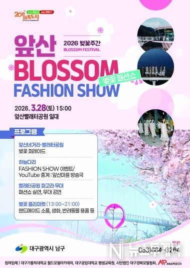 뉴스투게더 김인숙 기자 | 대구 남구는 오는 3월 28일 지역의 대표 관광명소인 앞산빨래터공원에서 벚꽃패션쇼 이벤트를 개최한다고 밝혔다.