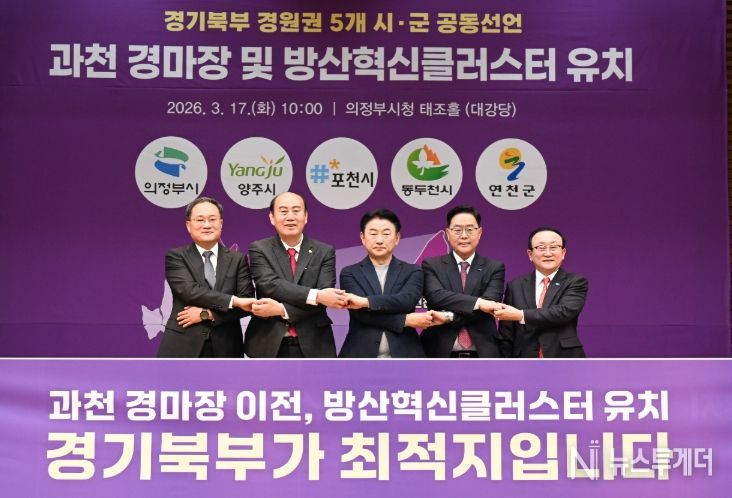 뉴스투게더 이현진 기자 | 양주시는 17일 의정부시청 대강당에서 의정부·포천·동두천시·연천군과 함께 ‘과천경마공원 이전 및 방산혁신클러스터 경기북부 유치’를 위한 공동 선언문을 발표했다.